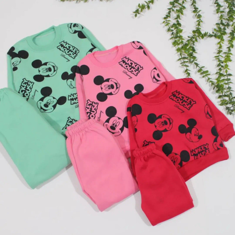 ست دلبرو از جنس دورس کرکی با چاپ ثابت، مناسب برای شستشو با خیال راحت. شامل بلیز و شلوار میکی موس در سایزبندی مختلف.